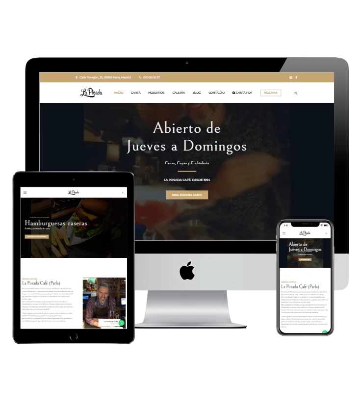 Además, la página web incluye un editor muy fácil de usar, con el que podrás actualizar en cualquier momento la información de tu negocio: menús, fotos, horarios, promociones y más.
