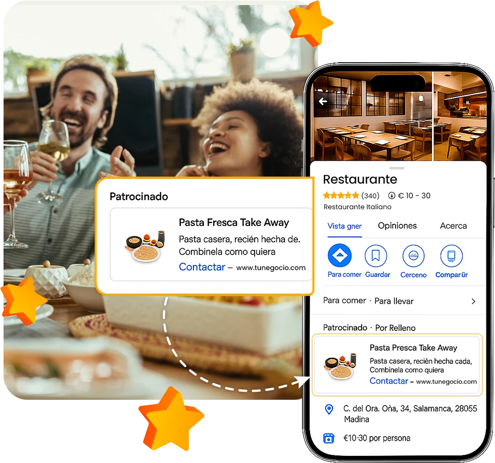 Sabemos que lo tuyo es la cocina y la atención al cliente. Lo nuestro es ayudarte a que más personas te encuentren, te elijan y repitan.